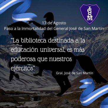 En el día de ayer, el IGSM se tiñó de historia y valores sanmartinianos. Una jornada dedicada a nuestro patrono. Los/as estudiantes de primero a cuartos años participaron de charlas sanmartinianas. Agradecemos a la Prof. Laura Bernal, la Prof. Beatriz Rodriguez y Elena Centelles por su presencia y colaboración en difundir vida y obra del Gral. San Martín
